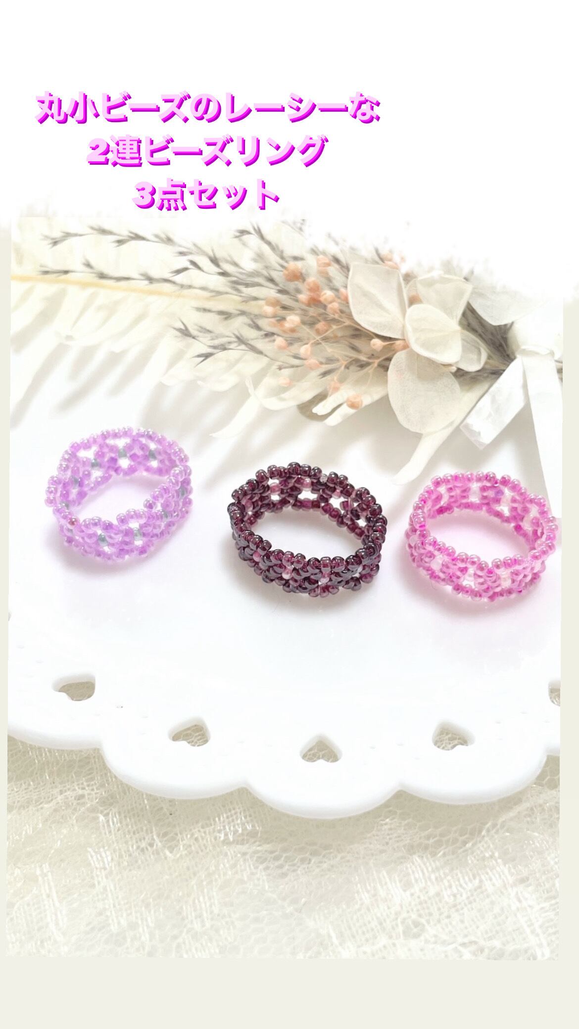 丸小ビーズのレーシーな2連ビーズリング3点セット